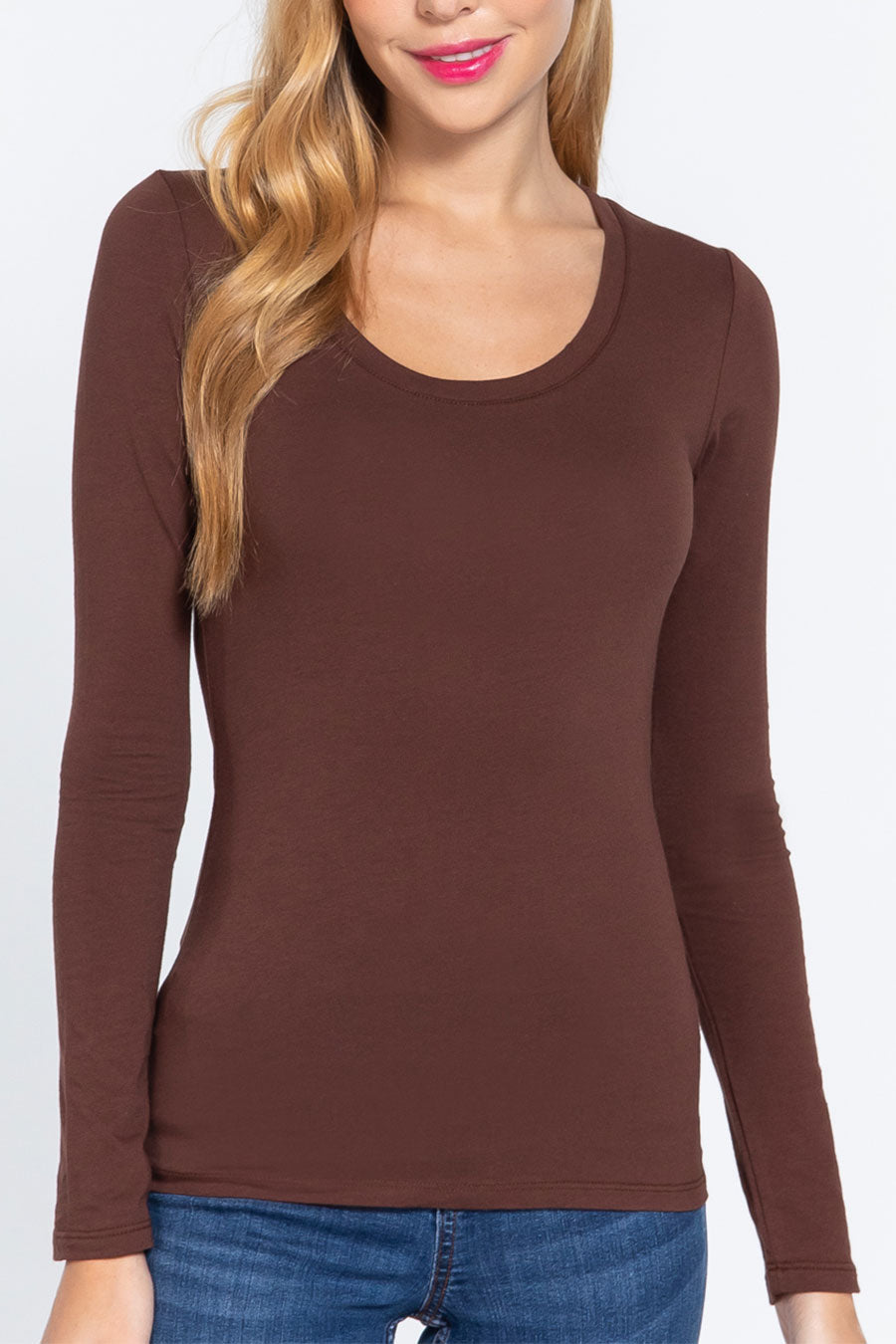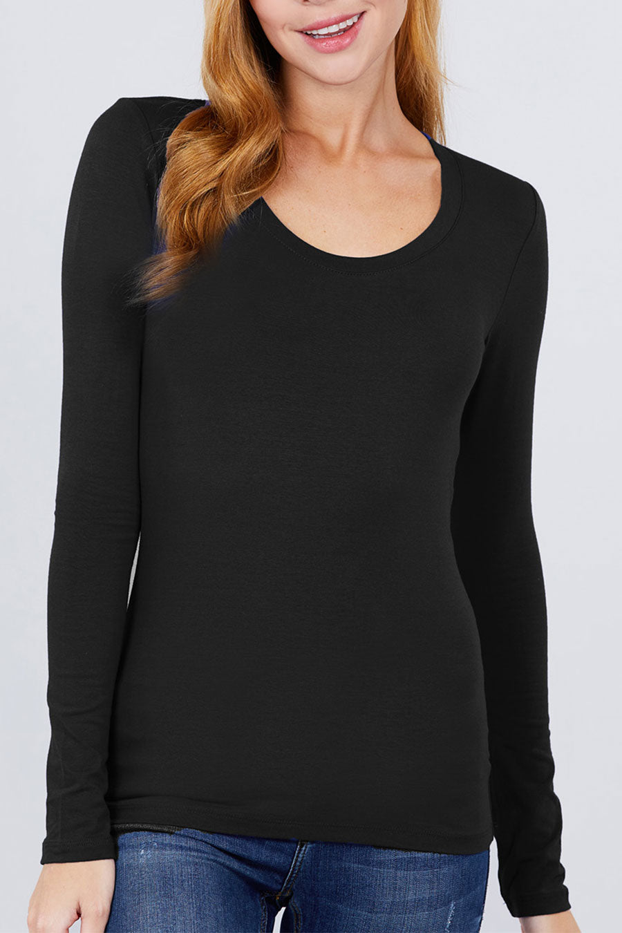 Basic Long Sleeve Scoop Neck T-Shirt Top