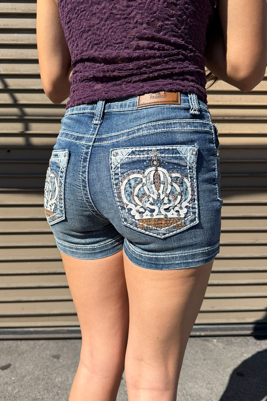 2000s Style Butterfly Patch Rhinestone Bling Back Pocket Bootcut Jean with Good Stretch