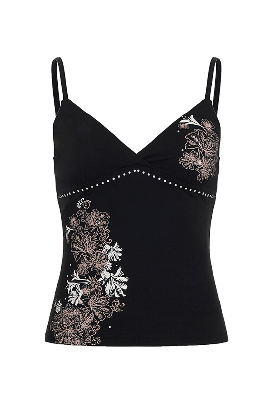 Description: 2000s Vintage Floral Print Deep V-Neck Cami Top