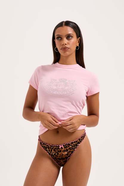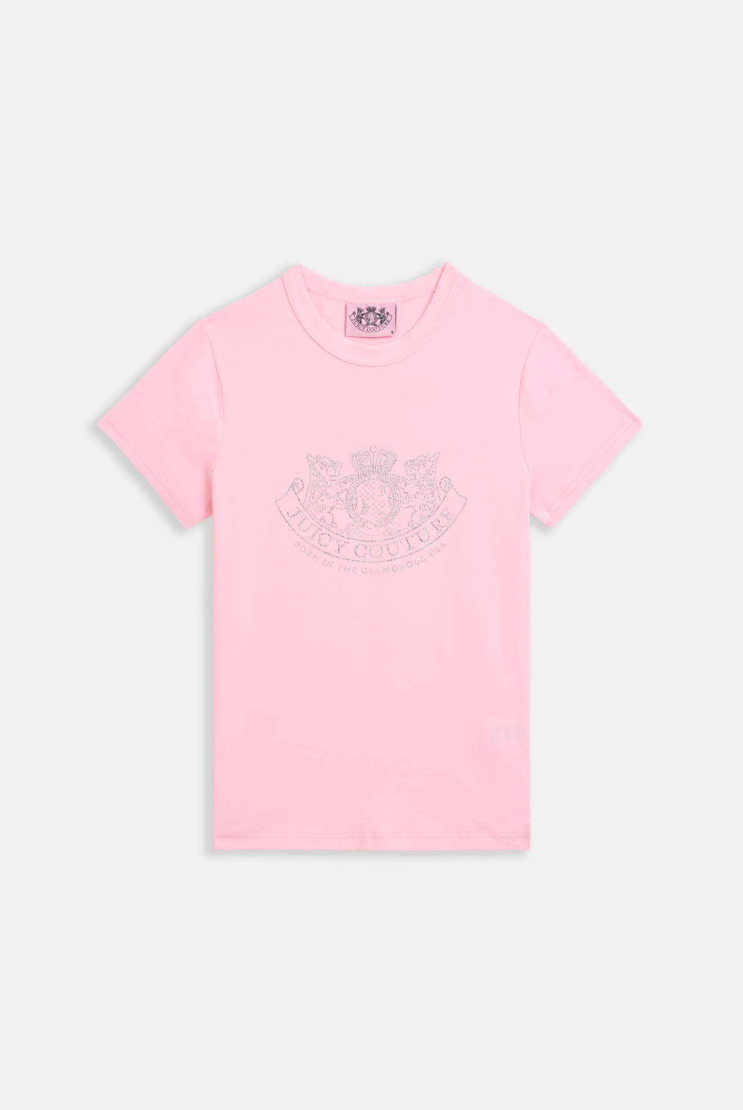 Short sleeved t-shirt in almond blossom sustainable cotton. This slim fit t-shirt features heritage dimante crest graphic at front.