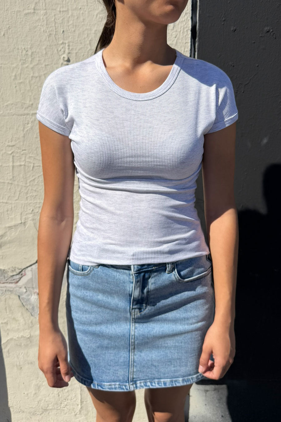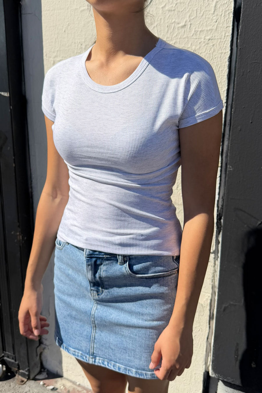Basic Short Sleeve Crew Neck Fitted Rib Knit Top