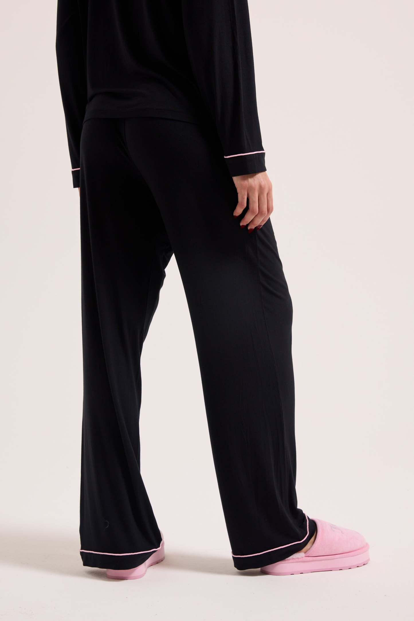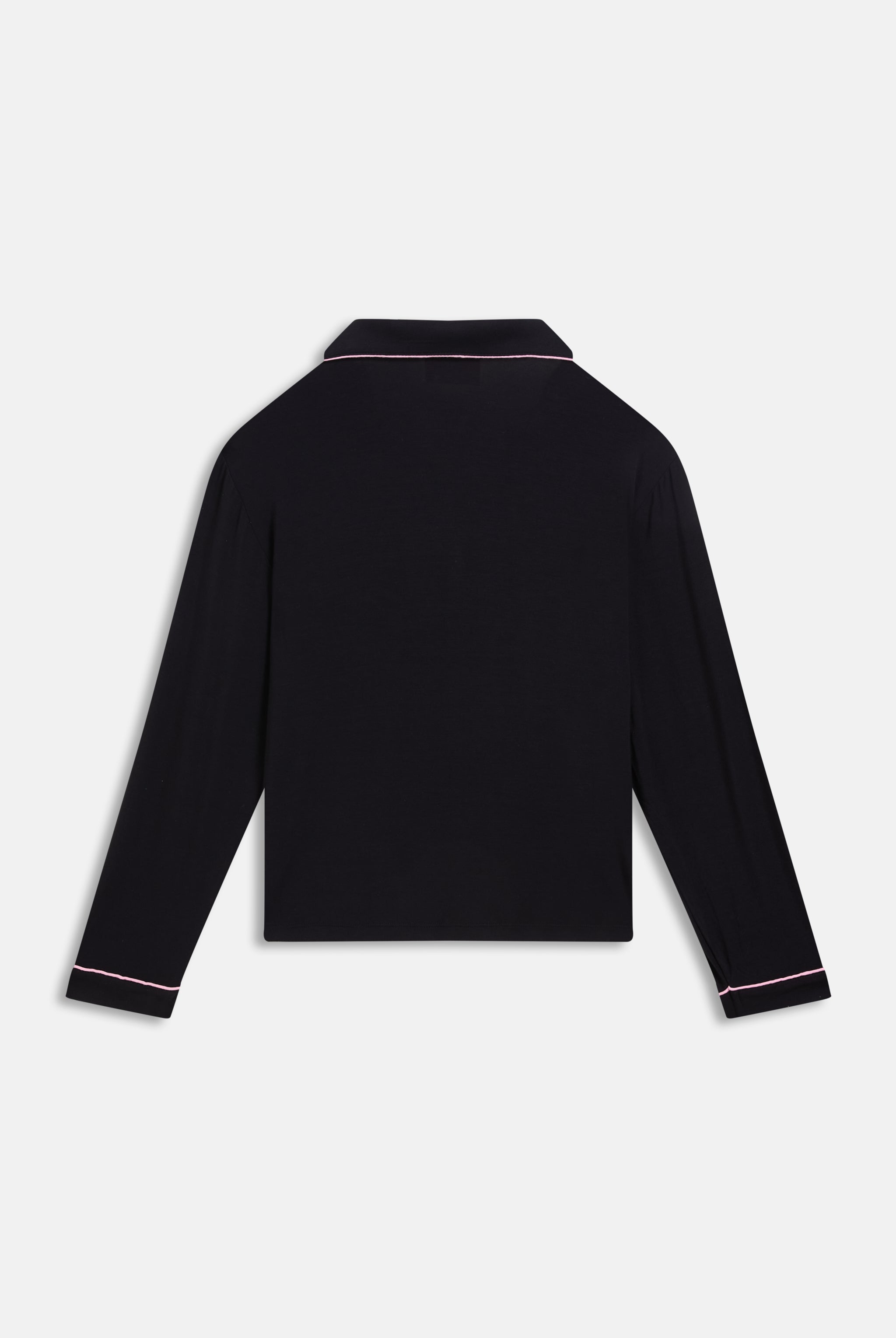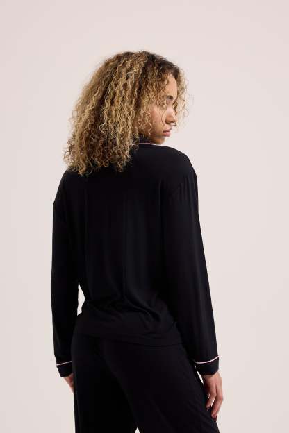 Pyjama shirt and trouser set in premium jersey. These soft feel pyjamas feature a long sleeved shirt with contrast tipping detail. The set collared shirt is branded with contrast crest logo at chest pocket and drawstring waist bottoms feature crest logo at left hip.