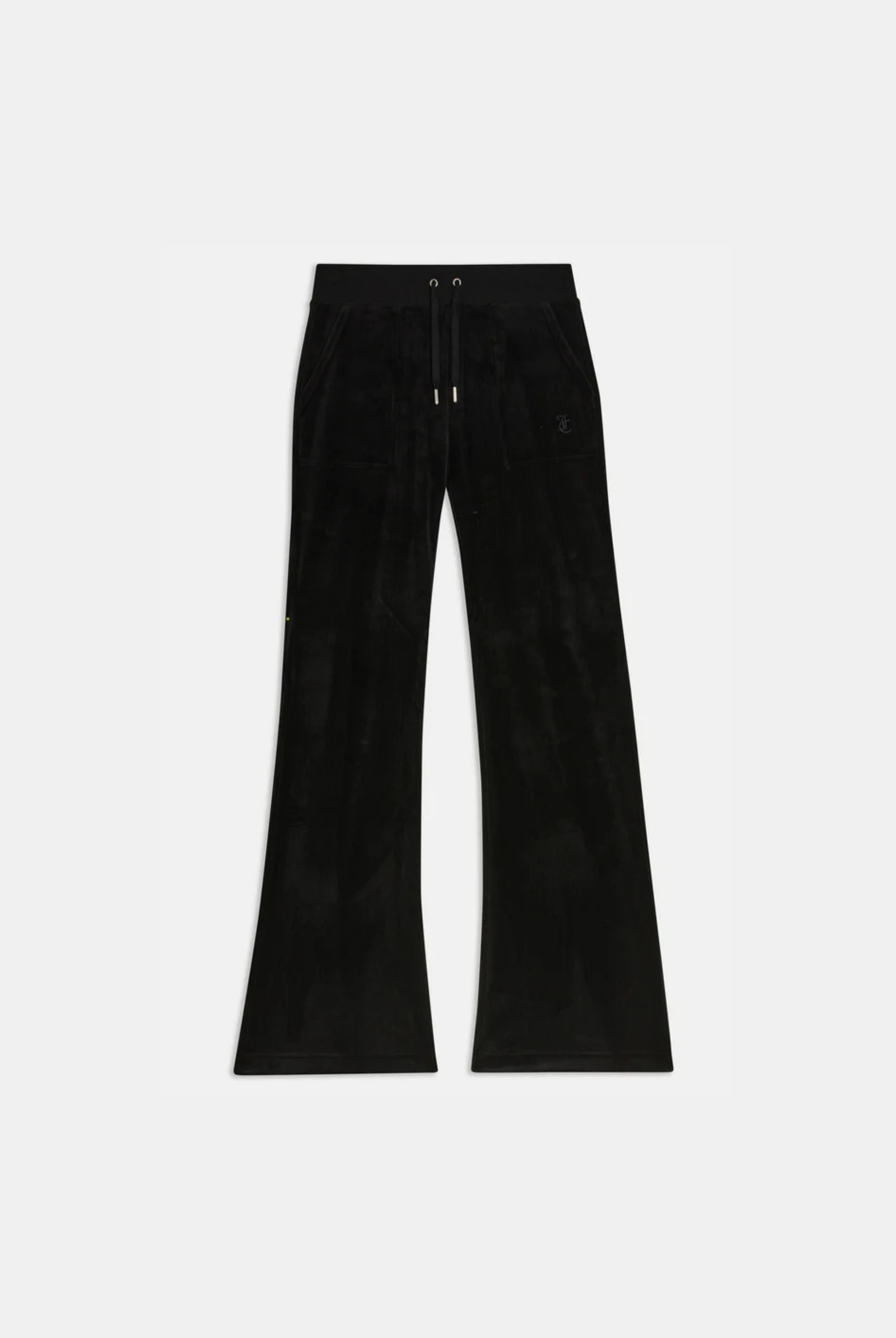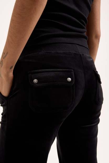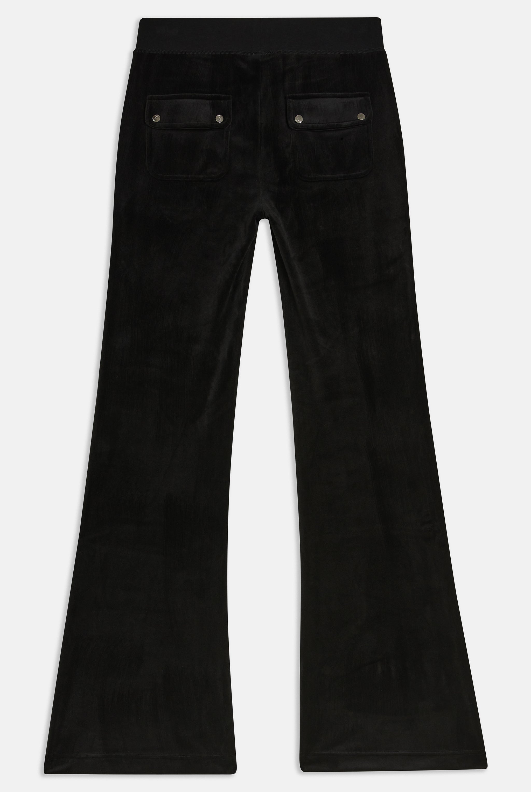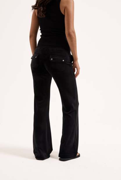 BLACK LOW RISE FLARE POCKET CLASSIC VELOUR TRACK PANT