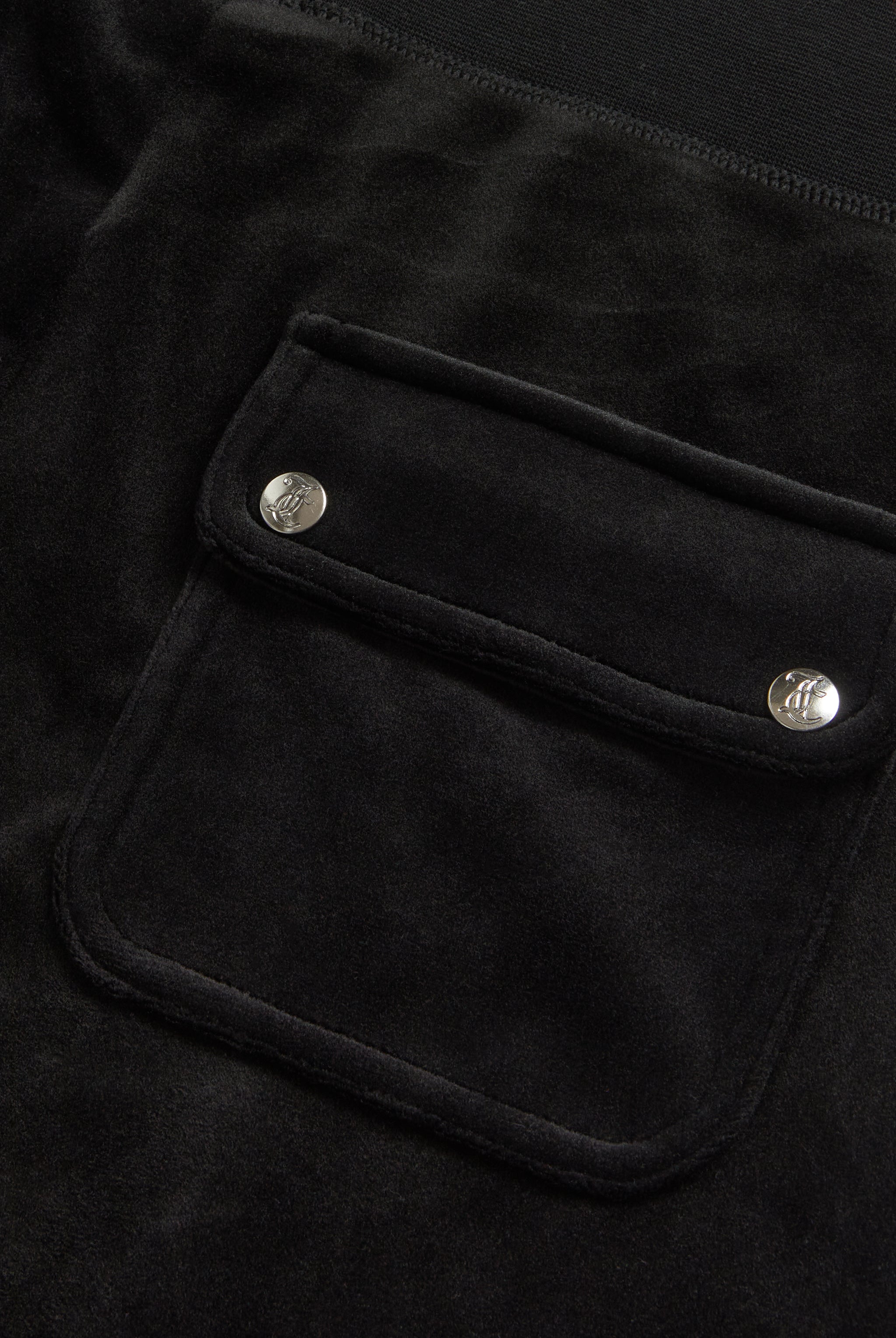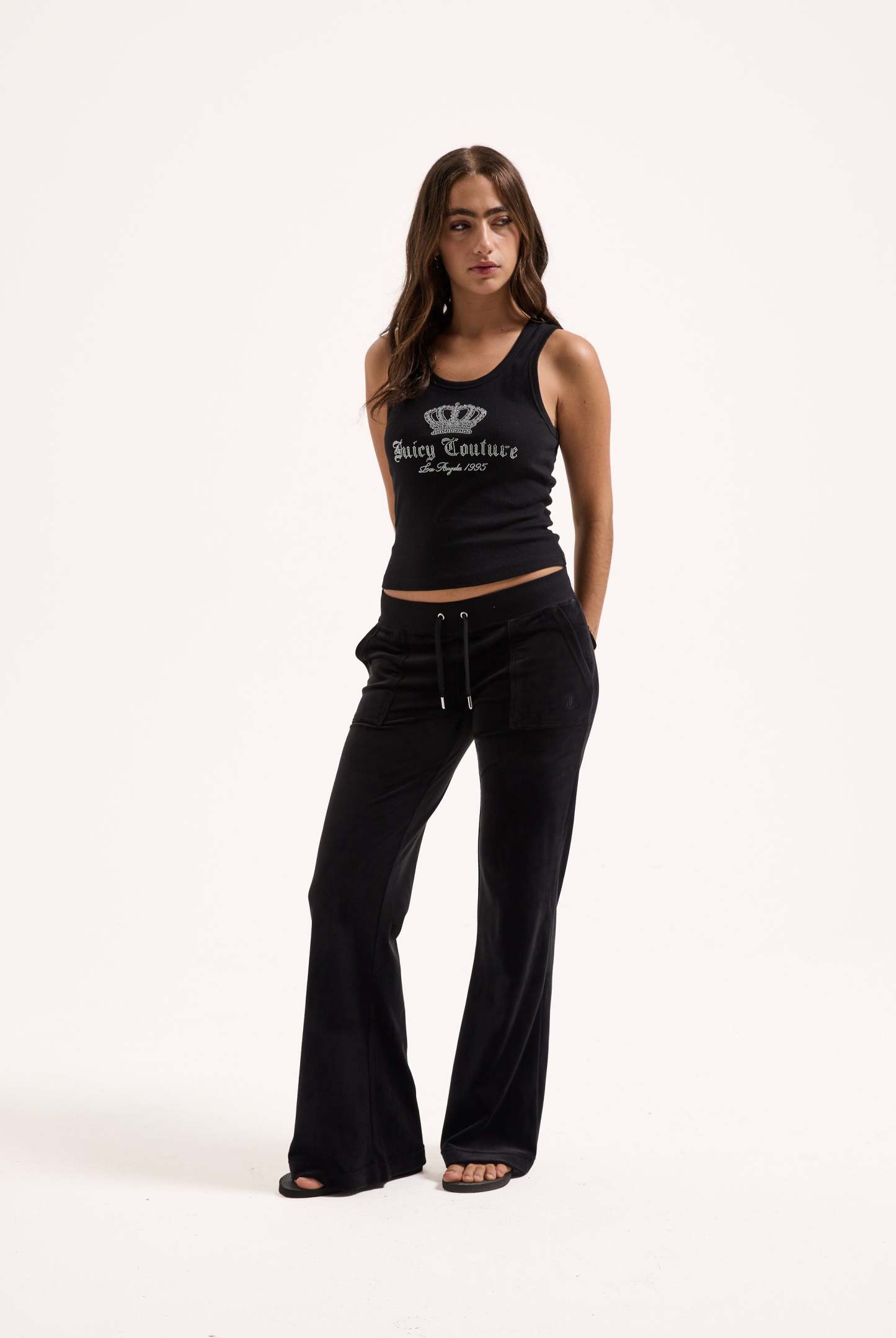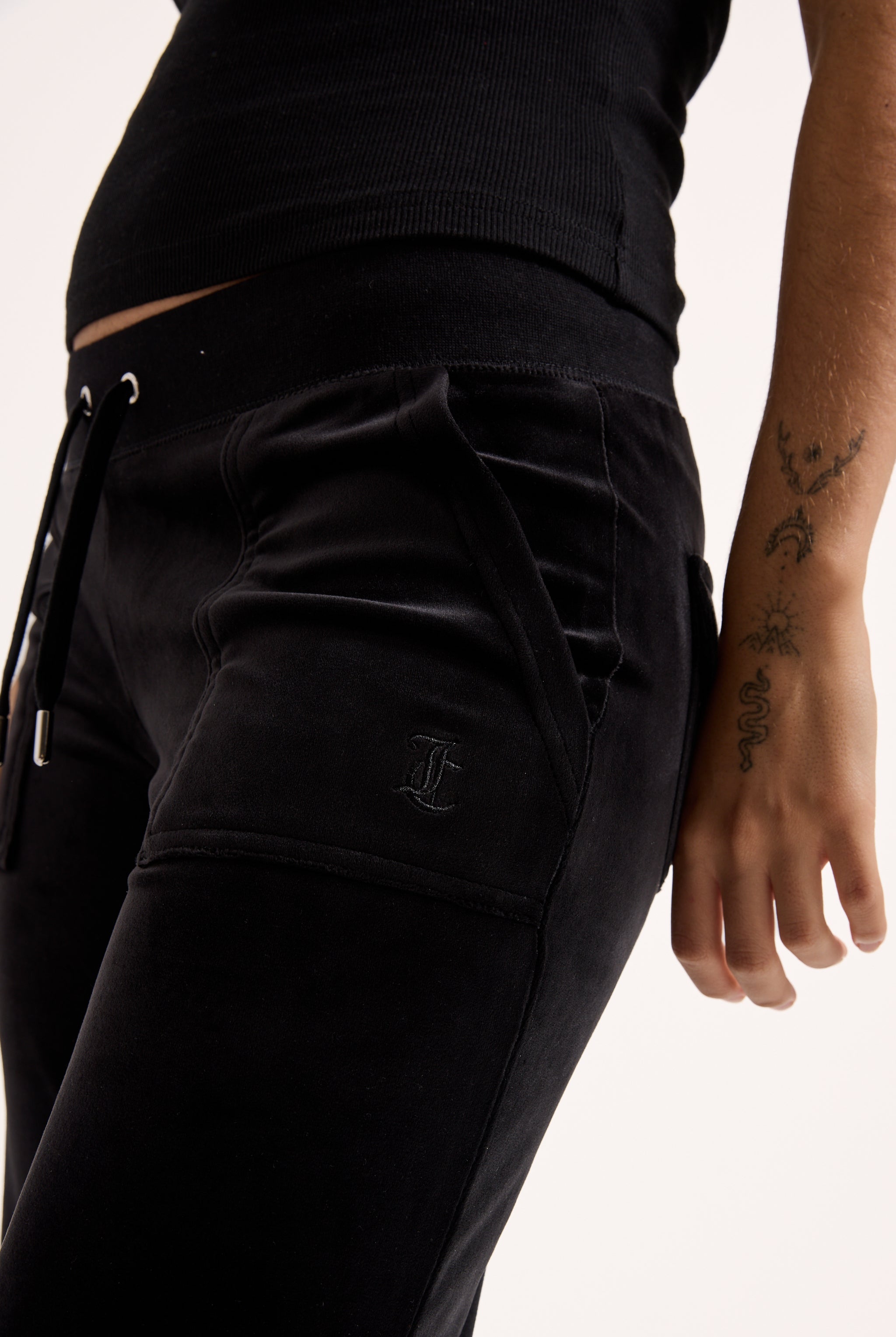 BLACK LOW RISE FLARE POCKET CLASSIC VELOUR TRACK PANT