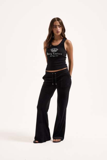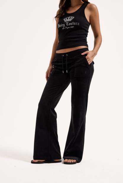 BLACK LOW RISE FLARE CLASSIC VELOUR TRACK PANT