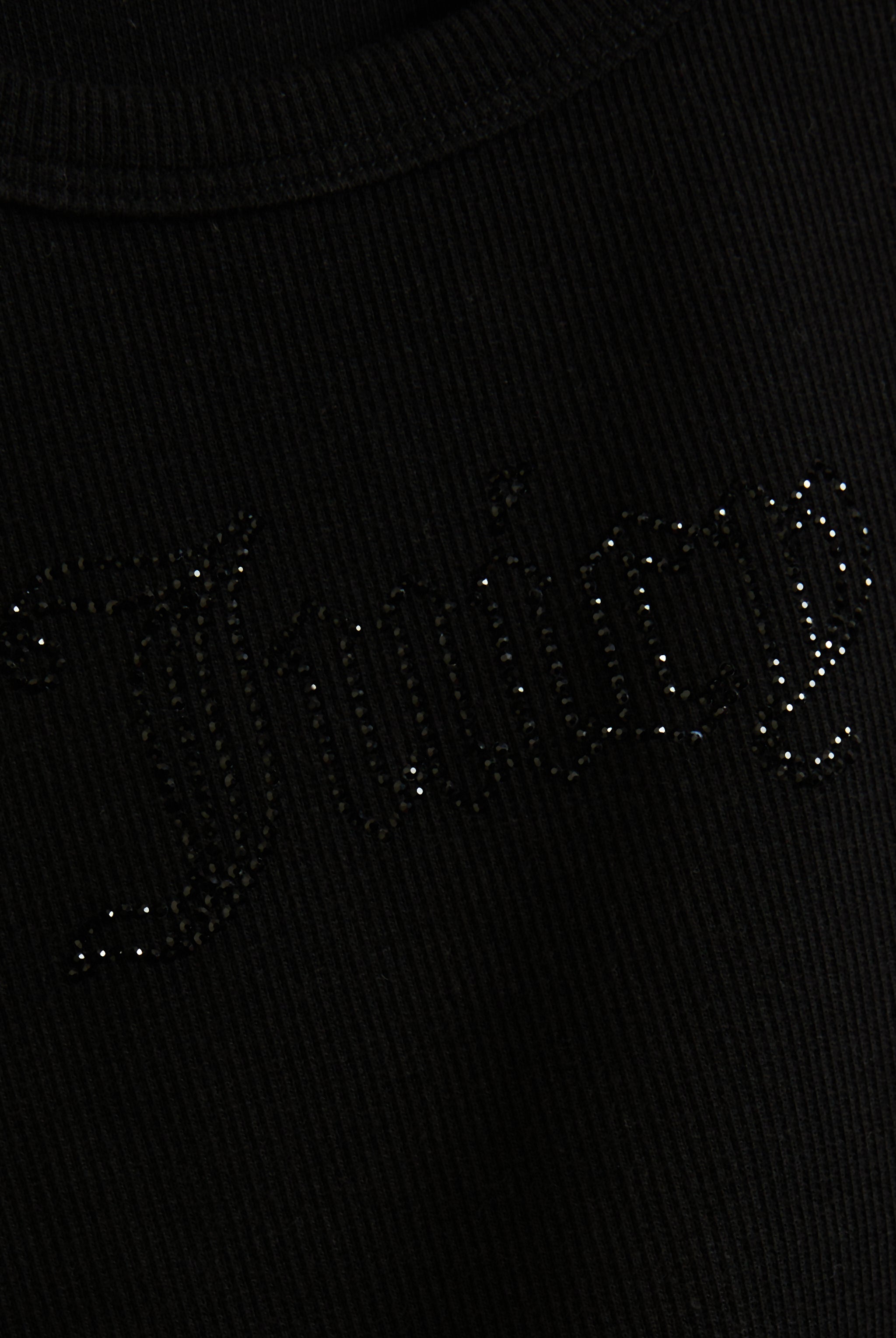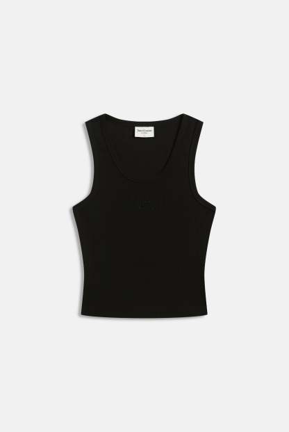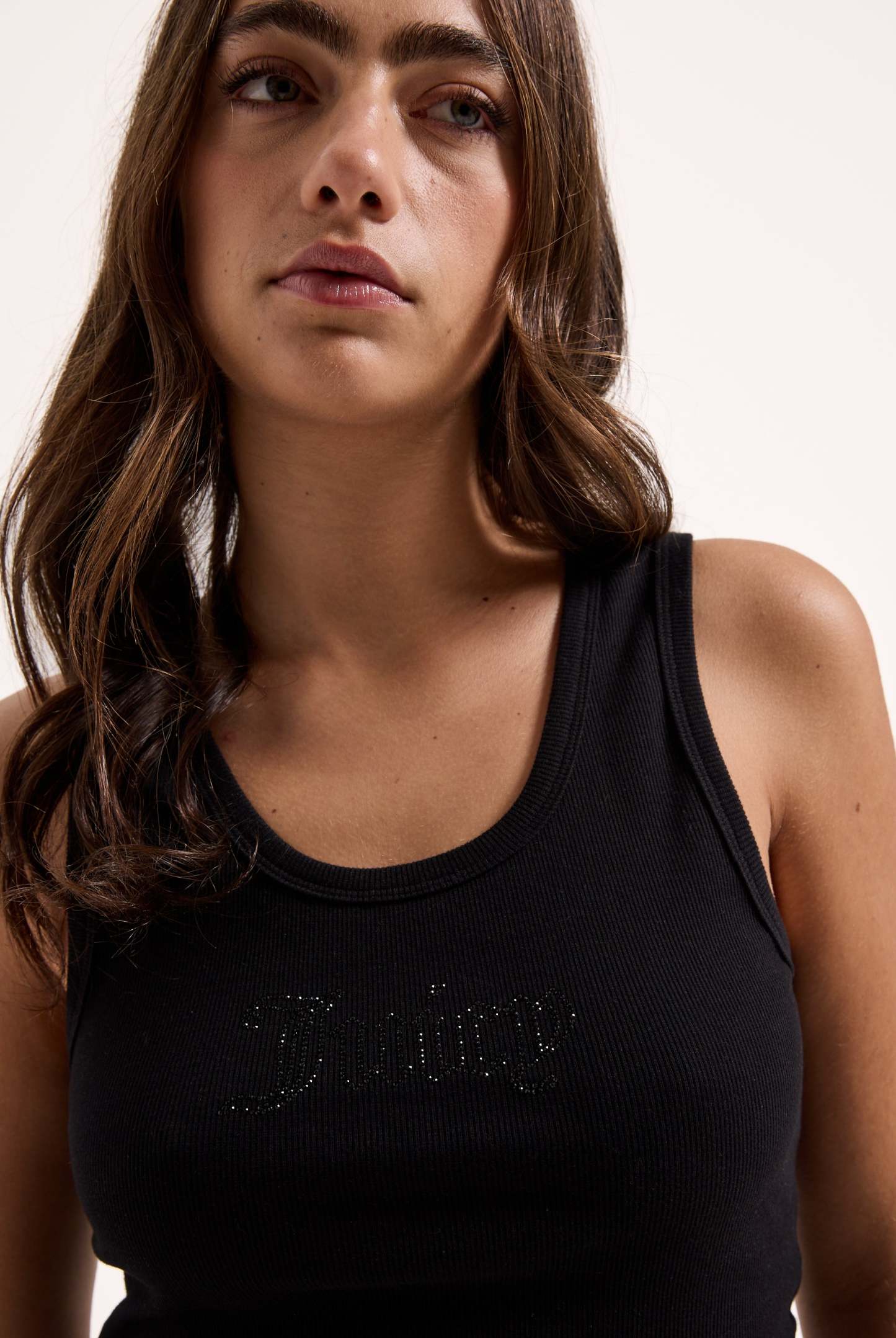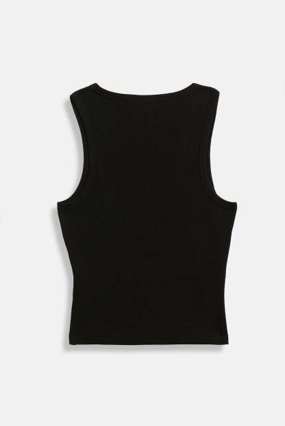 Ribbed vest in black cotton. This racer top features iconic Juicy outline diamanté logo across the chest.