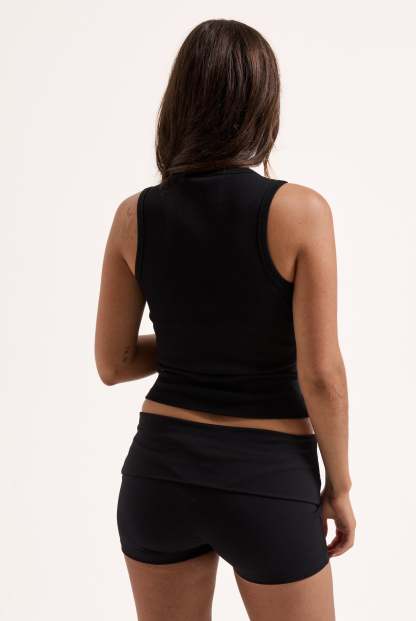 BLACK RIBBED OUTLINE DIAMANTÉ RACER VEST
