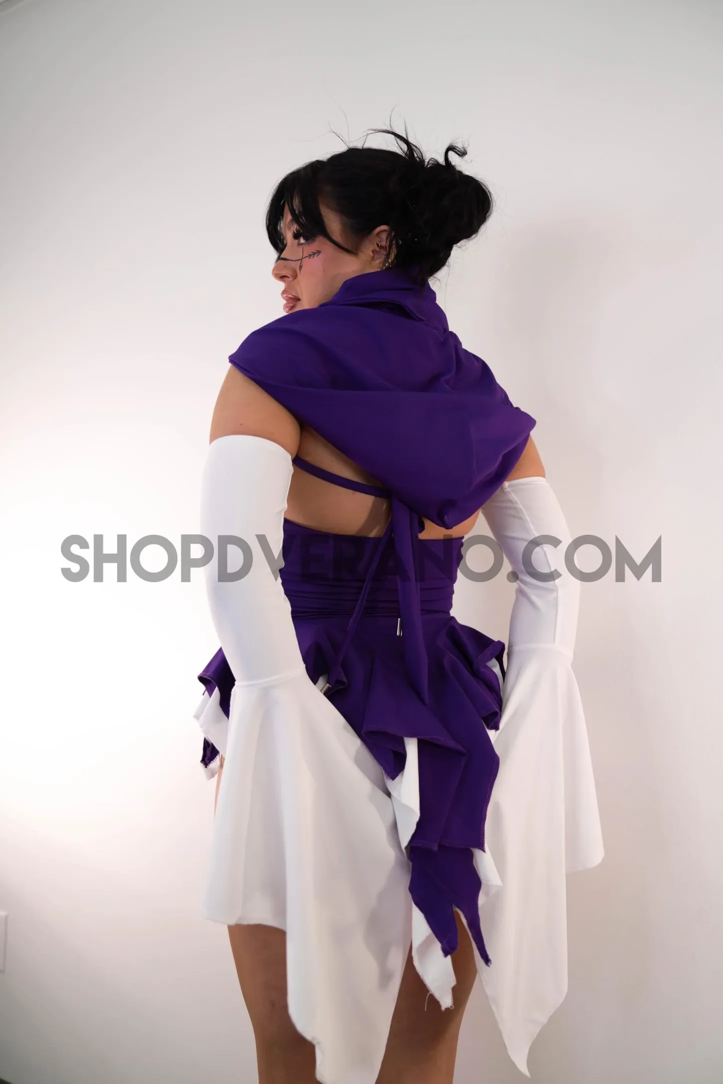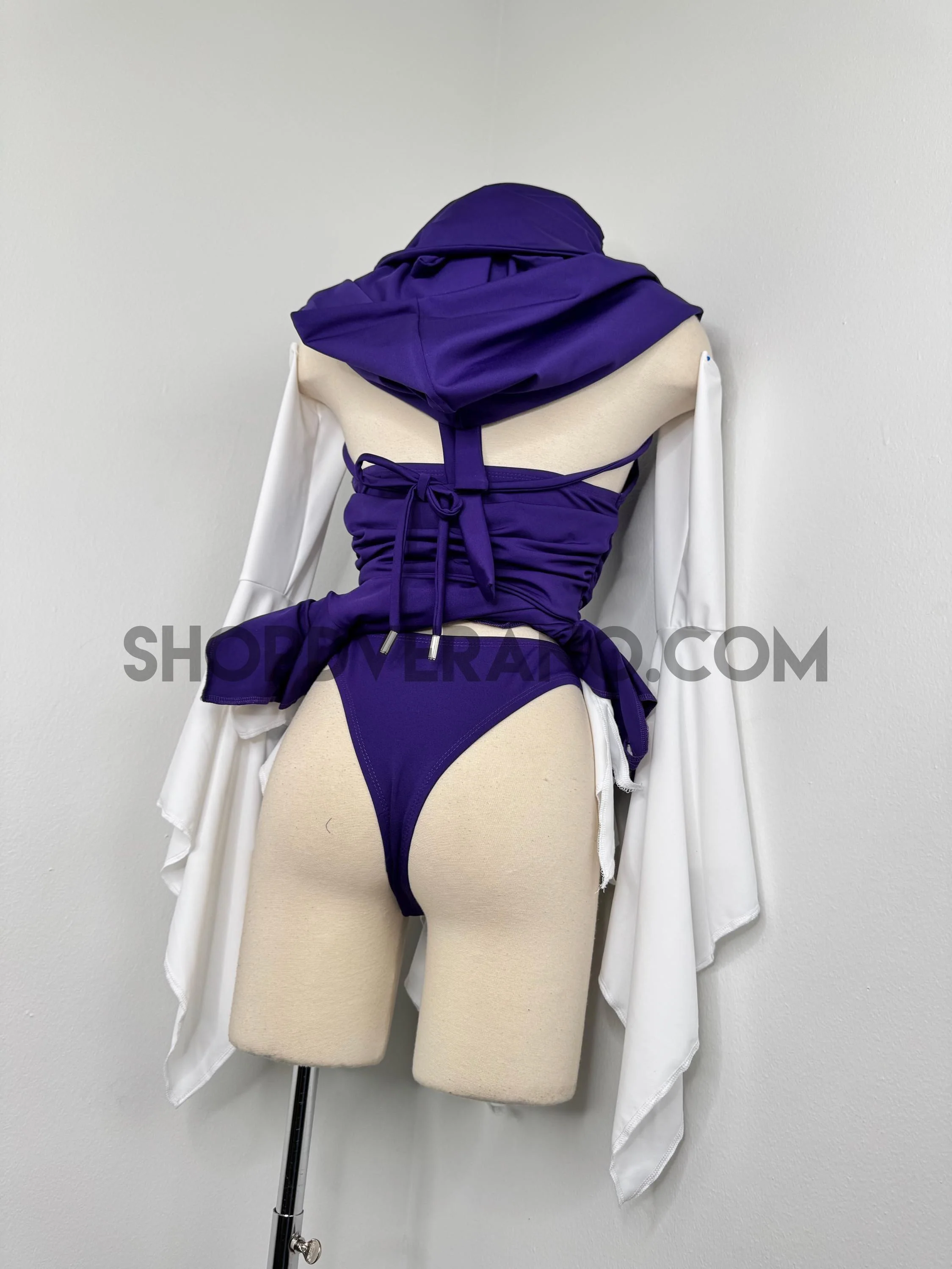 Designed in a deep purple and white contrast, the Bloodline Fairy Set reflects duality, softness and strength, calm and intensity. Crafted from high quality 4-way stretch fabric, it hugs your curves while remaining breathable and comfortable for long nights of dancing, exploring, and fully expressing your energy.