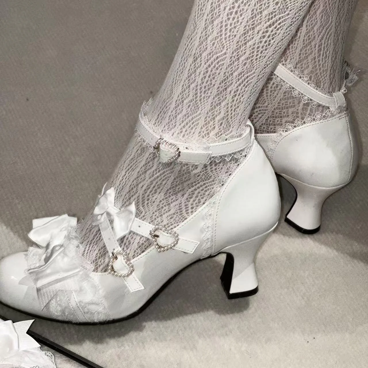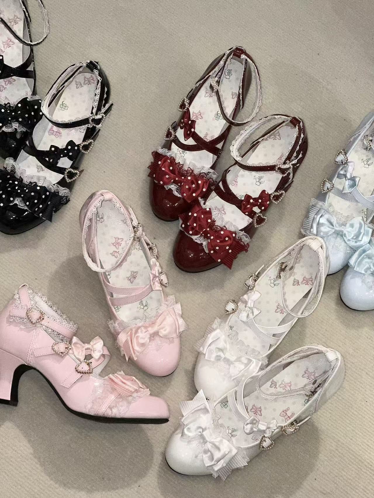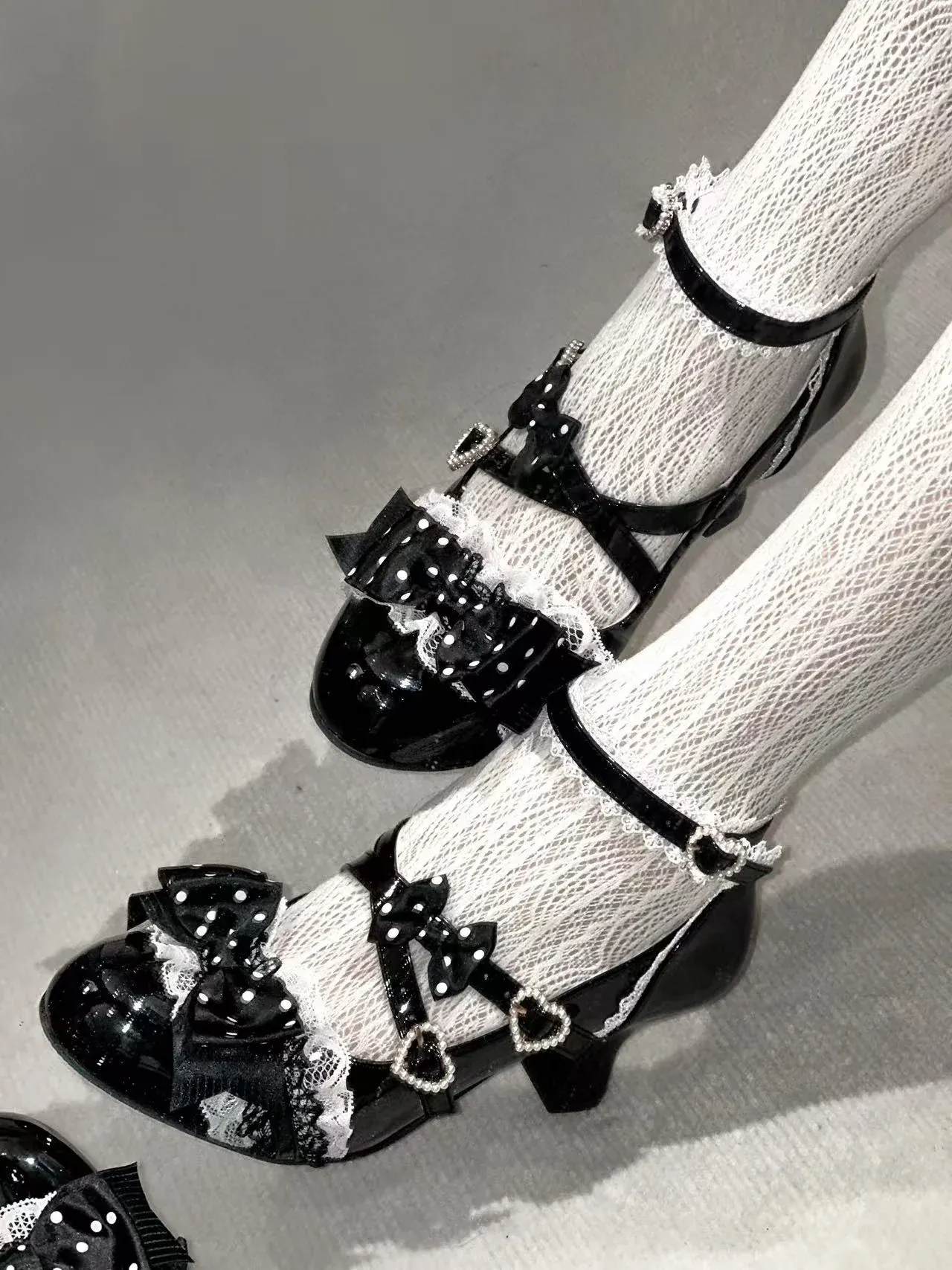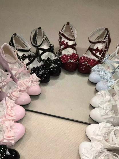 Spring-inspired glossy PU heels in black, white, red, pink, and green. Designed with a 6.5 cm heel for an elegant and feminine look.
