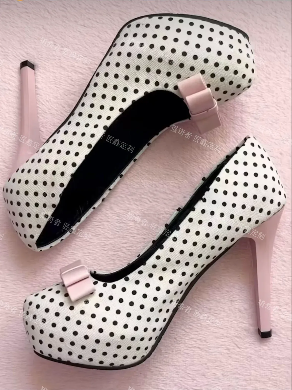 Bow-tie polka dot high heels