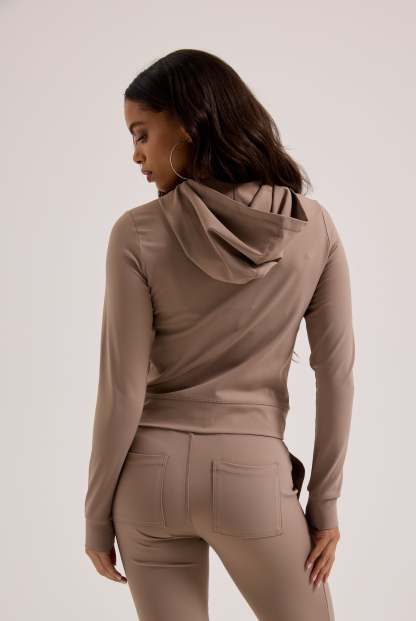 A sports update to our classic track pants; these bottoms are low rise in fungi peached interlock. Flared leg fit, with adjustable drawstring waist and front feature patch pockets. These activewear joggers feature back pockets and are finished with a tonal injection mould logo at the hip. Pair with the matching hoodie for the full sport tracksuit staple.