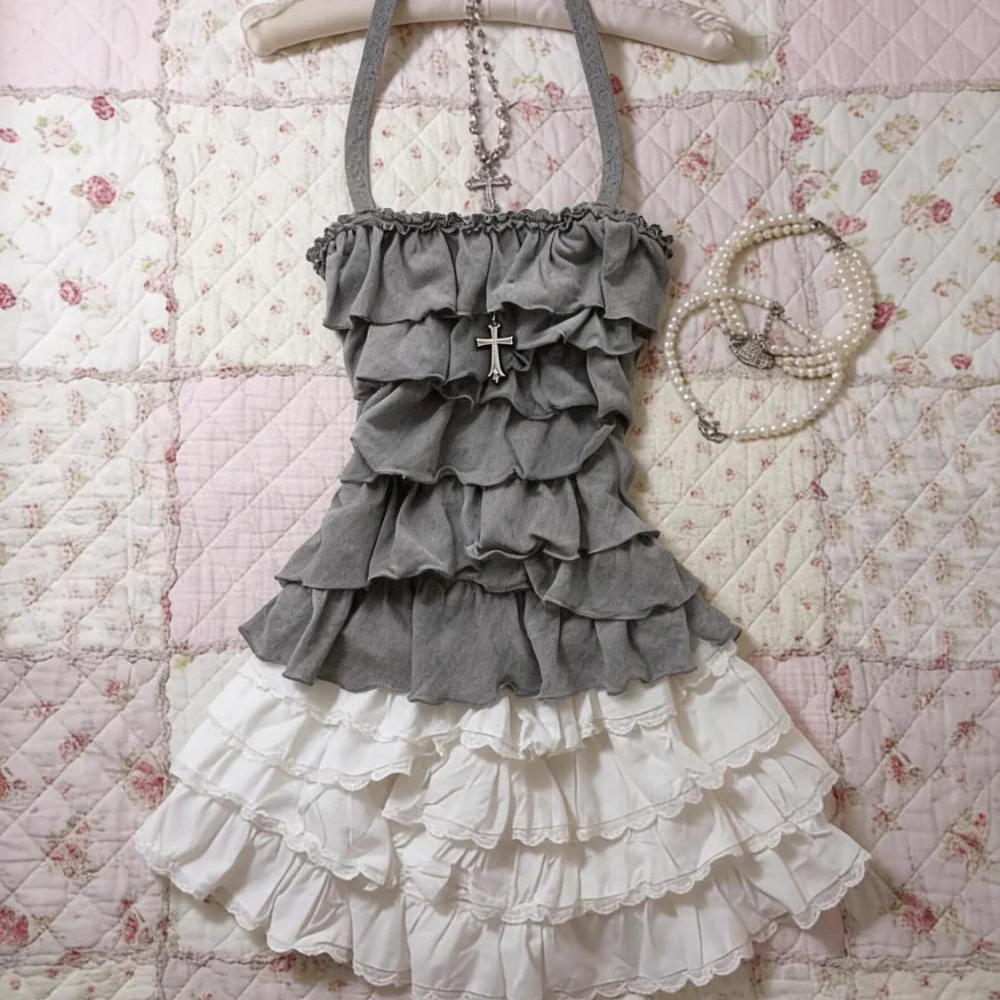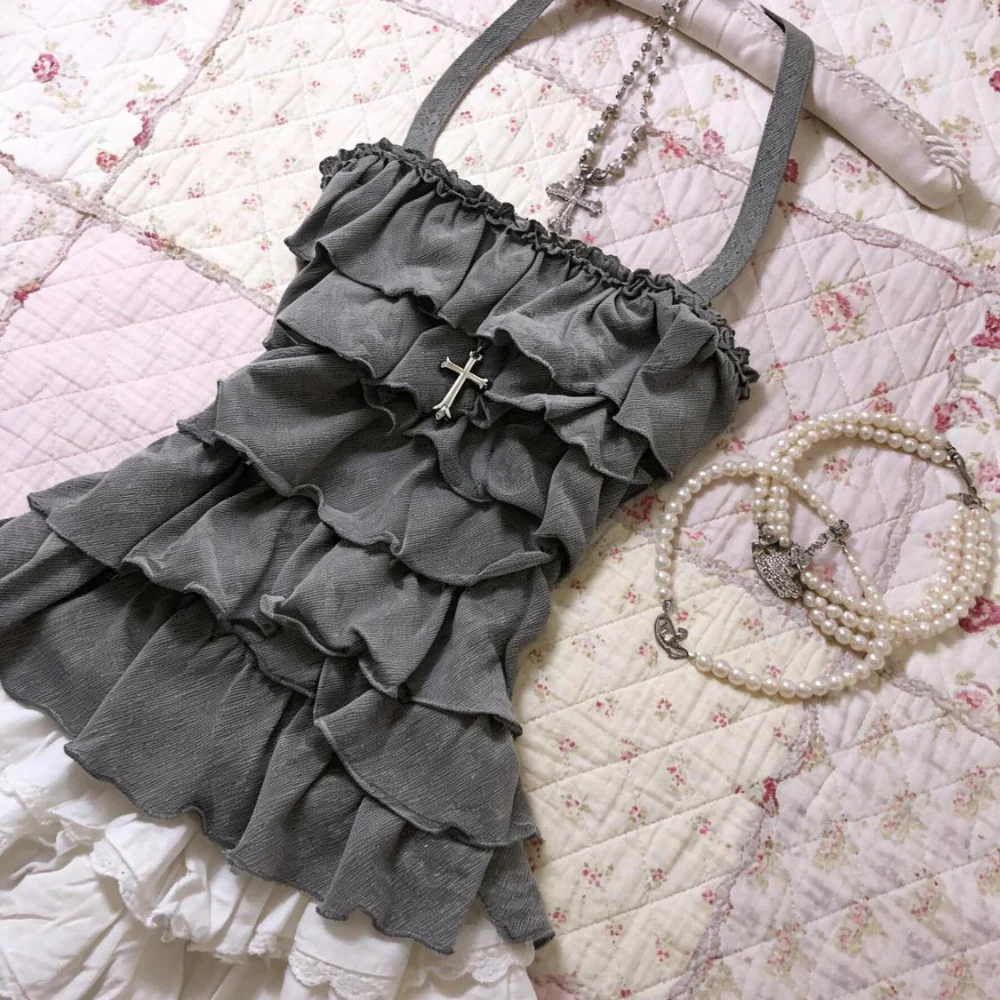 Gray strapless halter neck camisole top