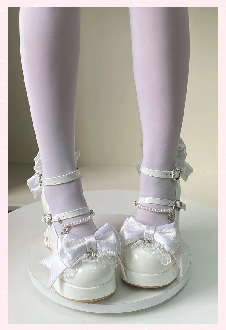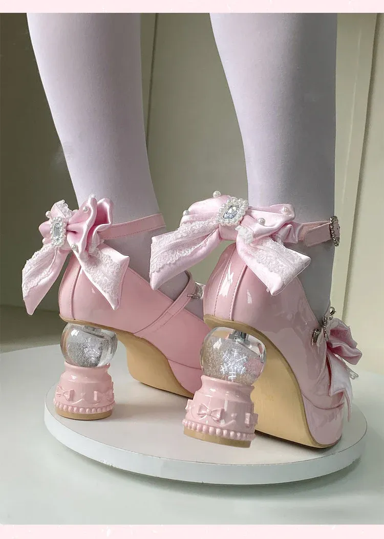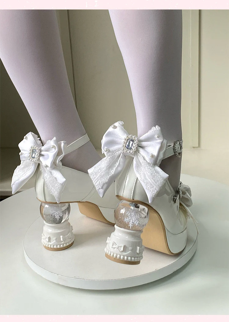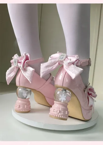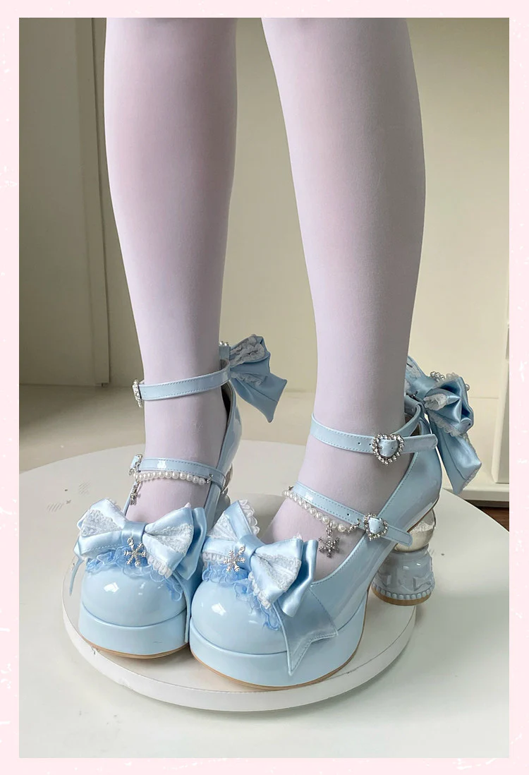 Irregular heel bow Mary Jane
