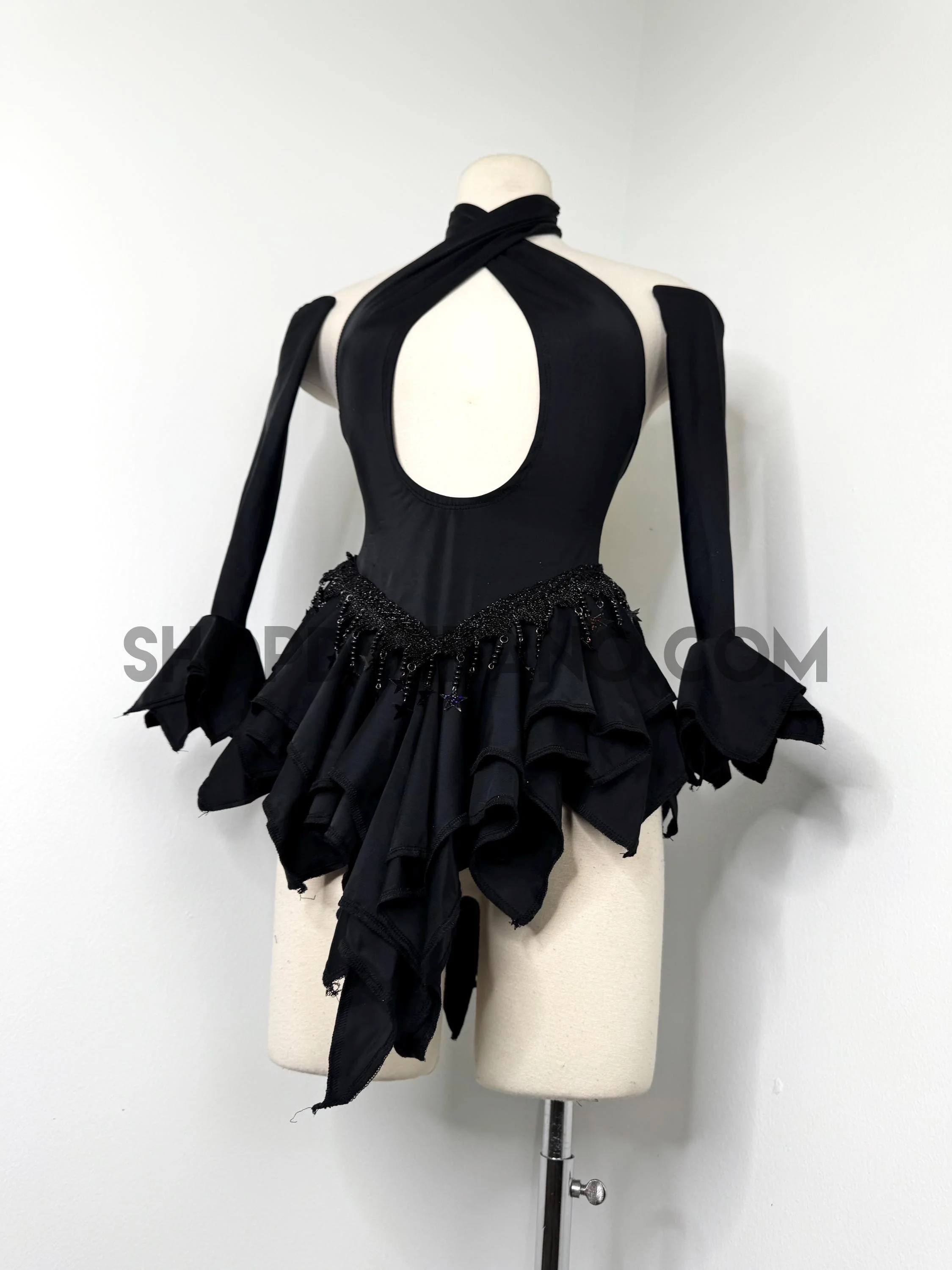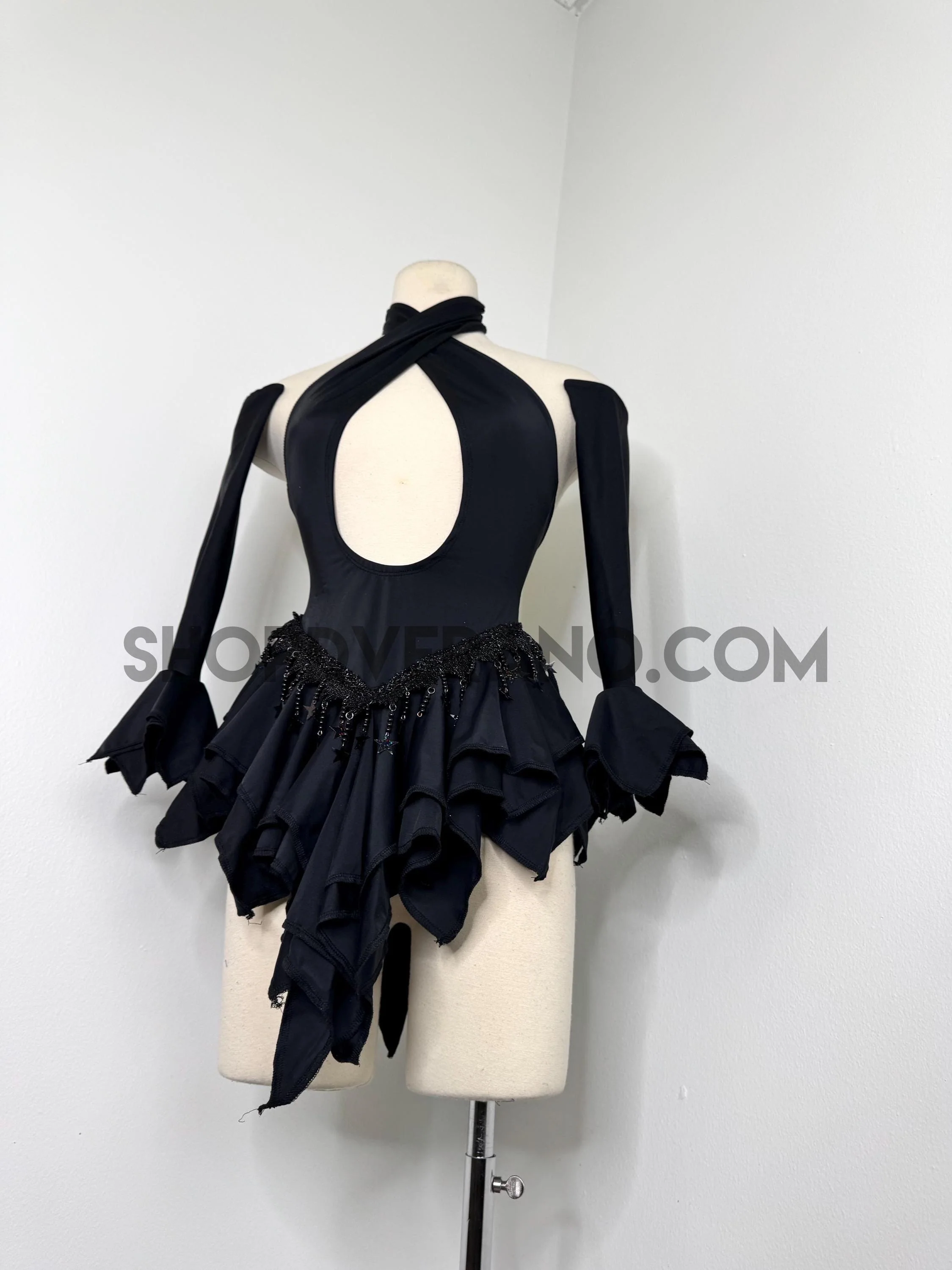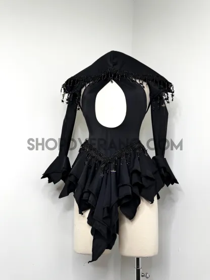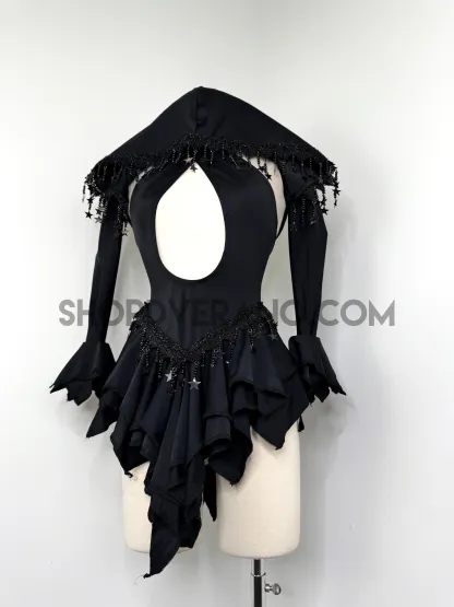 This striking all-black design blends dark goth fairycore with celestial edge, creating a sculpting, dramatic silhouette that commands attention from every angle.