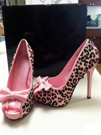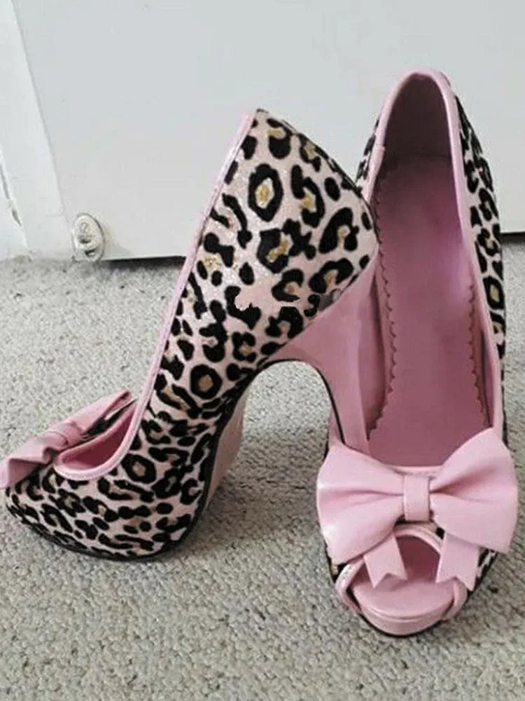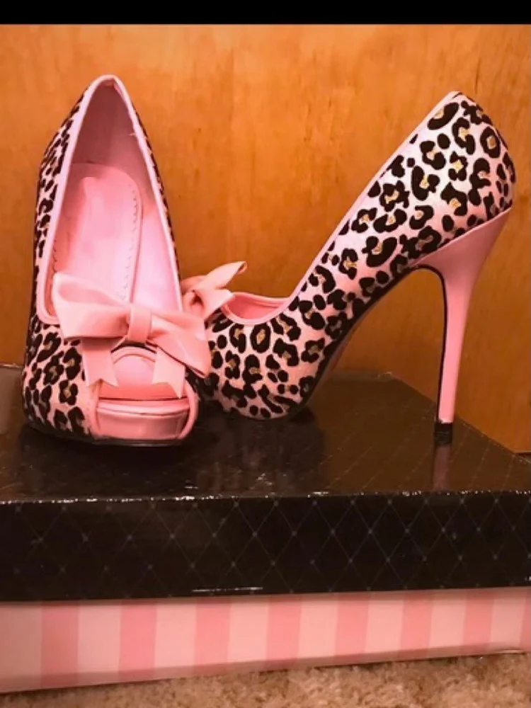 Pink leopard print bow high heels