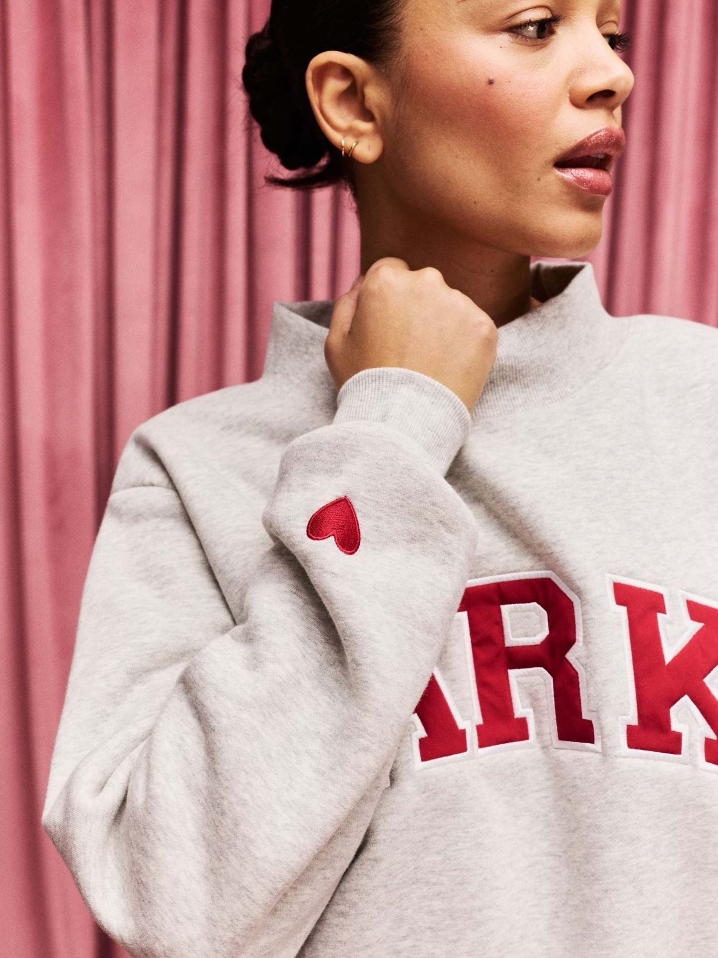 Preorder Valentine's Varsity Mockneck - Classic Grey + Crimson