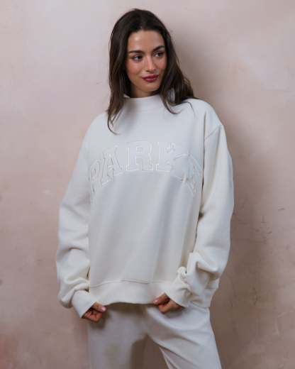 Bridal Varsity Mockneck - Pearl + White