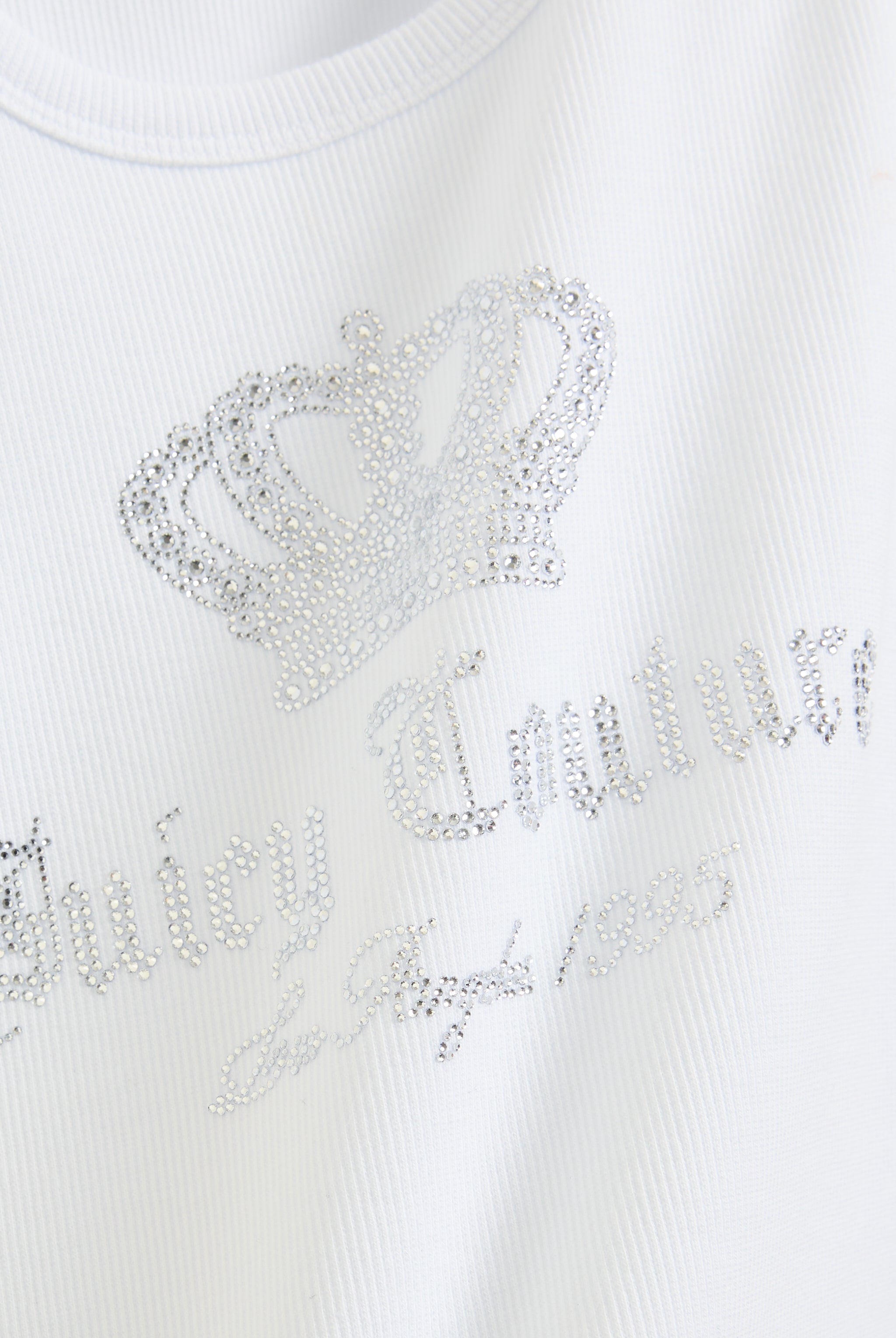 Ribbed vest in white cotton. This racer top features Juicy Couture crown diamanté logo across the chest.
